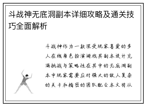 在《地下城与勇士》(DNF)这款游戏中,玩家常常会遇到卡顿的问题,特别是在进行多人副本、激烈战斗或者特效众多的场景时,卡顿的情况尤为严重。卡顿不仅会影响游戏体验,甚至可能导致玩家在关键时刻的操作失败,从而影响游戏进程。因此,如何有效解决卡顿问题成为了许多玩家关心的重点。本文将从四个方面详细探讨如何有...